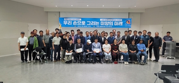 이번 사전 설명회에서는 미양면 주민과 기관 단체장, 시의원 등 약 60여명이 참석해 미양면 발전계획 수립을 위한 공동학습회 운영 배경 및 취지, 운영계획, 향후 일정 등을 설명했으며 사전설명회 후 주민들과 질의응답의 시간을 가졌다.
