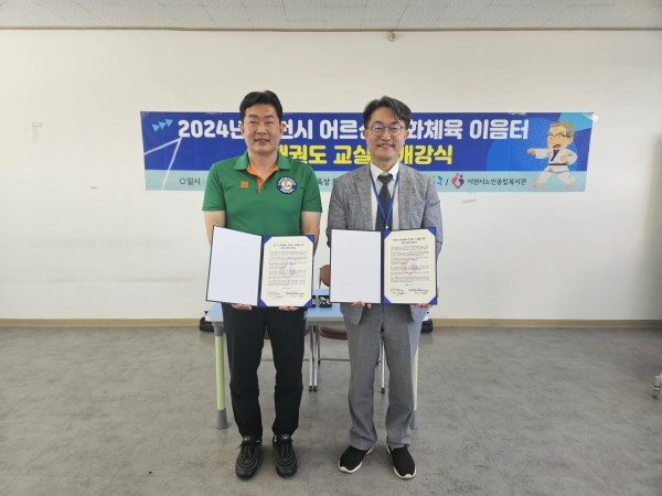 [금요저널] 이천시노인종합복지관은 지난 28일 2024년 어르신 문화체육 이음터 사업인 ‘건강지킴 이웃터-태권도 교실’프로그램 개강식 및 사업 수행을 위한 지역 체육시설과의 업무협약을 체결했다.