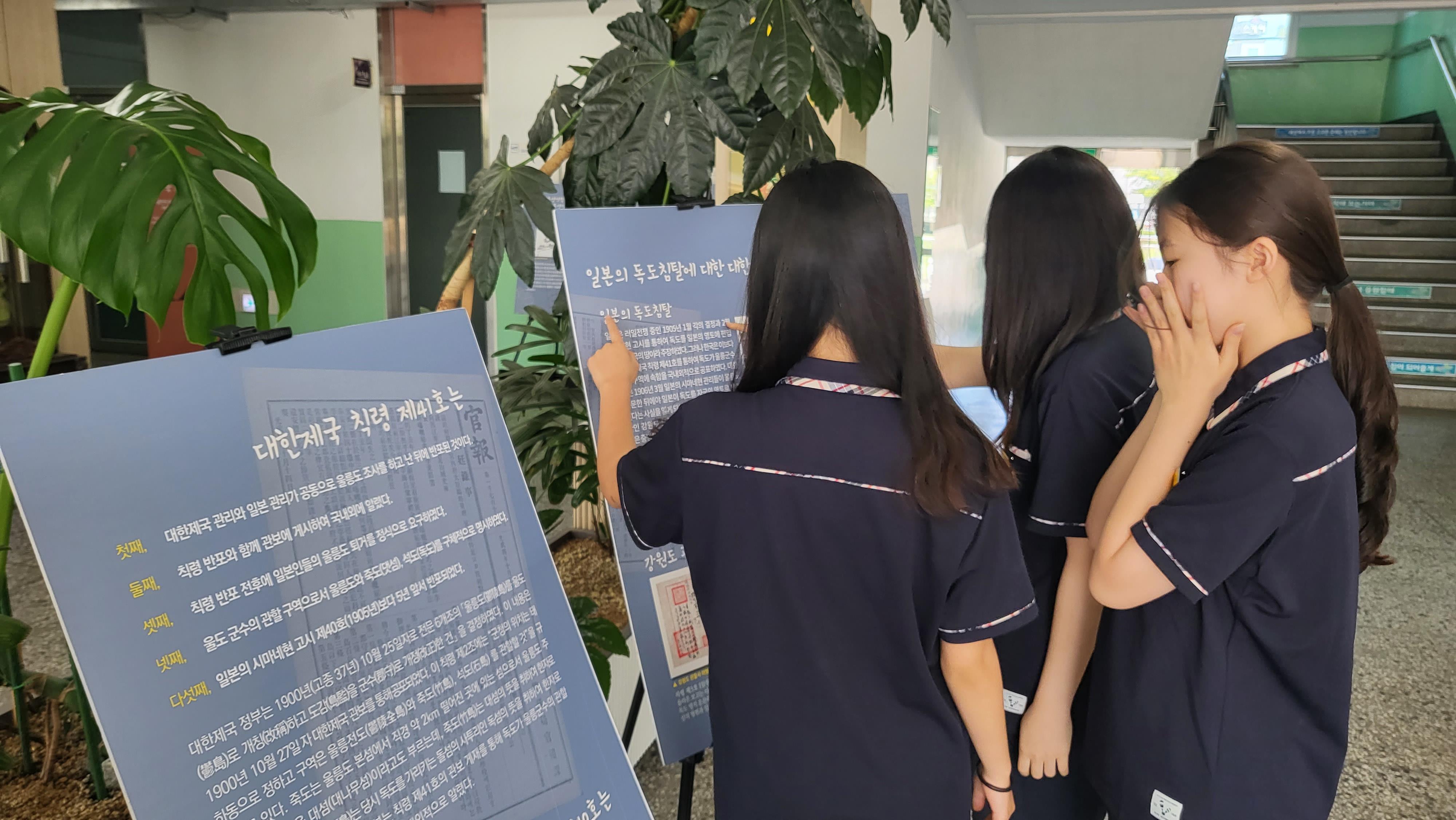 □ 이승태 교장은 “이번 전시회는 학생들이 일본 독도 도발의 부당성을 명확히 인식하고 소중한 우리의 독도를 알기 쉽게 이해하도록 기획해,