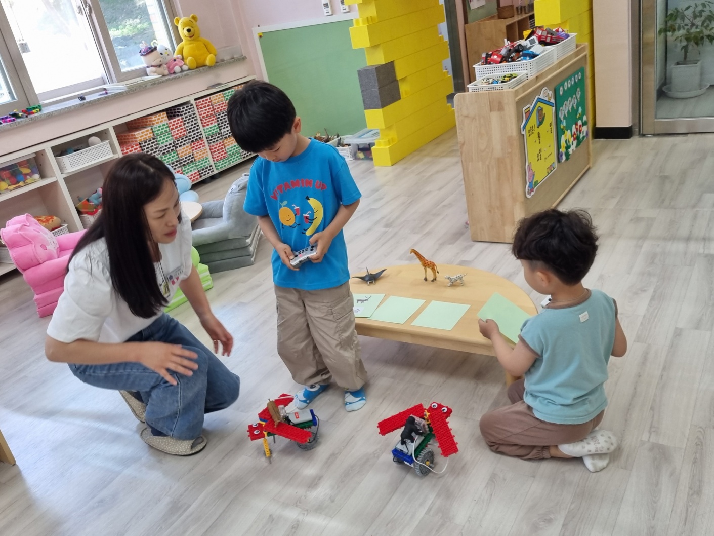 □ 사랑반에서는‘소중한 우리 가족’이라는 주제로 가족을 소개하고 가족사진을 꾸미는 활동과 ‘로봇시티’디지털 기기를 활용한 수업이 진행되었다.