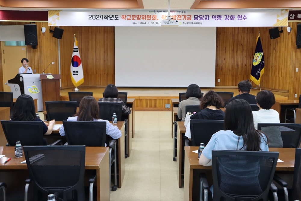 □ 경상북도성주교육지원청(교육장 채종원)은 관내 초·중·고등학교 학교운영위원회 및 학교발전기금 업무담당자 21명을 대상으로 성주교육지원청 대회의실에서 업무 역량 강화 연수를 실시하였다.