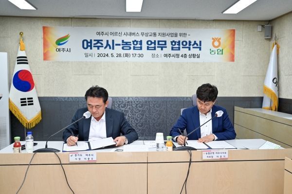 [금요저널] 여주시와 농협은 지난 28일 시청 상황실에서 ‘여주시 어르신 시내버스 무상교통 지원 사업’ 추진을 위한 업무 협약식을 가졌다.