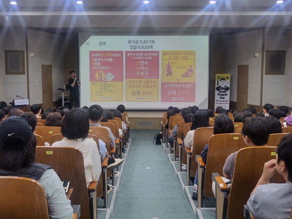 이날 김선태 작가는 ‘충주시 유튜브 이야기’라는 주제로 B급 감성의 홍보물로 충주시 페이스북이 유명해졌던 시기부터 유튜브를 하게 된 과정, 유튜브 성공 비결을 소개하며 ‘틀을 깨보자’는 메시지를 전했다.