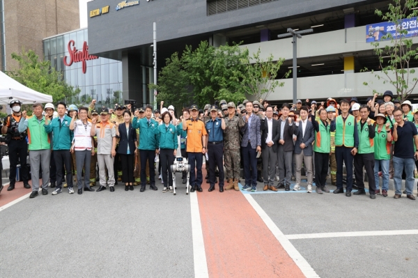 특히 올해 훈련은 지진으로 인한 통신 마비 상황에 대비하기 위해 훈련 참여기관 간 재난안전통신망을 적극적으로 활용해 재난 상황 발생 초기대응부터 복구까지 전반적인 대응체계를 점검했고 소방 드론, 매몰자 음향탐지기, 4족 보행 로봇 등 다양한 장비를 동원해 훈련 효과를 극대화했다.