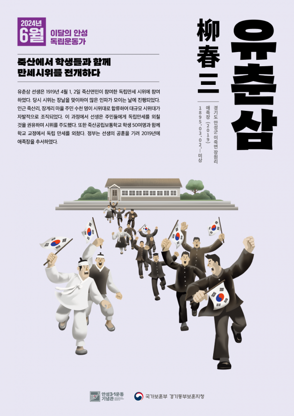 [금요저널] 안성시와 국가보훈부 경기동부보훈지청은 공동으로 안성3.1독립만세운동에 참여한 독립운동가 유춘삼 선생을 ‘2024년 6월 이달의 안성 독립운동가’로 선정했다.