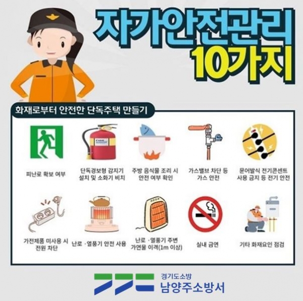 [금요저널] 남양주소방서는 봄철 지속적으로 발생하는 단독주택 화재안전 및 인명피해 저감을 위해 단독주택 화재예방 수칙 및 주택용 소방시설 설치를 홍보하고 있다.