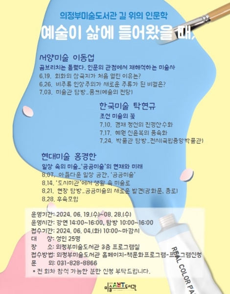 [금요저널] 의정부미술도서관은 6월 19일부터 길 위의 인문학 ‘예술이 삶에 들어왔을 때,’를 운영한다.