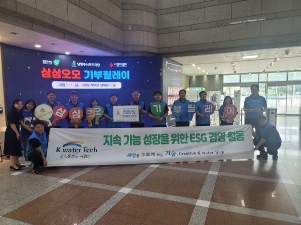 [금요저널] 남양주시 와부읍에 소재한 케이워터기술 경기동북권사업소 직원들은 지난 30일 남양주시복지재단과 함께하는 ‘삼삼오오 기부릴레이’ 30번째 주자로 참여했다.