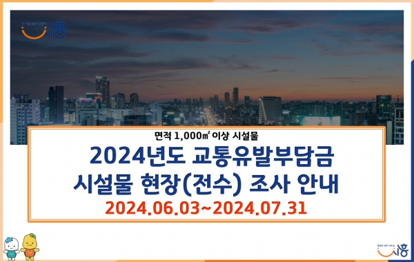 [금요저널] 시흥시는 ‘2024년 교통유발부담금 부과’를 위해 6월 3일부터 7월 31일까지 부과 대상 시설물에 대한 현장 조사를 실시한다.
