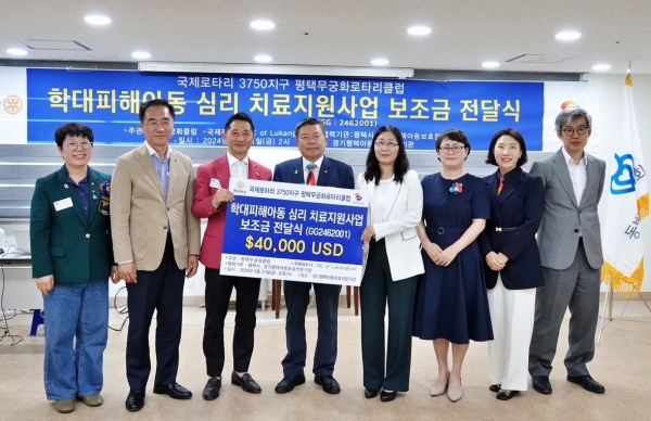 [금요저널] 국제로타리 3750지구가 경기평택아동보호전문기관에 학대 피해 아동을 위한 심리치료 지원사업 보조금을 지원했다.