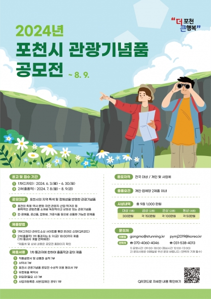 한편 ‘2024년 포천시 관광기념품 공모전’과 관련된 자세한 내용은 포천시청 누리집 공고문을 통해 확인할 수 있다.