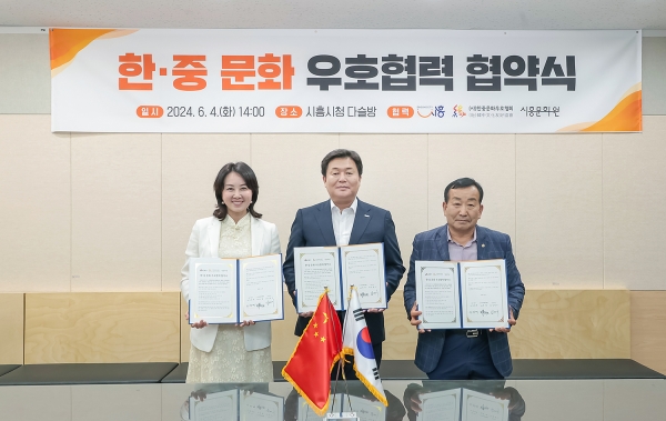 [금요저널] 시흥시는 4일 시청 다슬방에서 시흥문화원, 한중문화우호협회와 함께 ‘한·중 문화 우호 협력 협약’을 체결했다.
