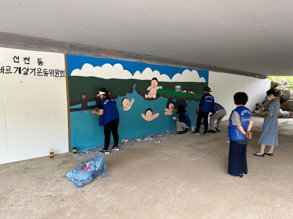 ‘신천동 관계단체 합동’ 벽화 그리기 봉사활동. 마을 환경개선 도모