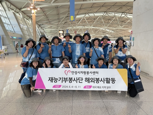 안성시자원봉사센터 소속 재능기부봉사단 17명으로 구성된‘2024 재능기부 해외봉사단’은 태국·미얀마 국경지대 메솟에 거주하는 난민을 대상으로 이·미용, 집수리, 벽화 그리기, 문화 전달, 교육 프로그램 등의 재능기부 봉사활동과 함께 의약품과 치약, 학용품 등의 후원 물품 나눔을 진행할 예정이다.