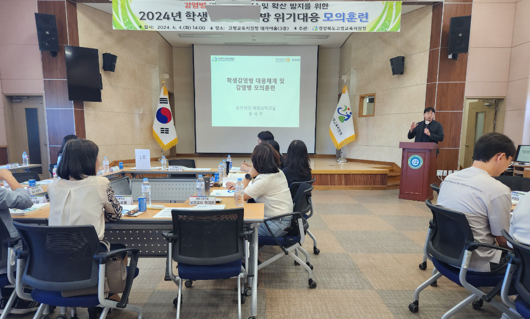 경상북도 고령교육지원청(교육장 김호상)은 6월 4일(화) 교육지원청, 고령군보건소, 관내 학교 관계자 30여명이 참석하여 학교 내 감염병 발생 시 신속하고 체계적인 대응 역량 강화를 위한 ‘2024 학교 감염병 예방 위기 대응 모의훈련 연수’를 실시하였다.