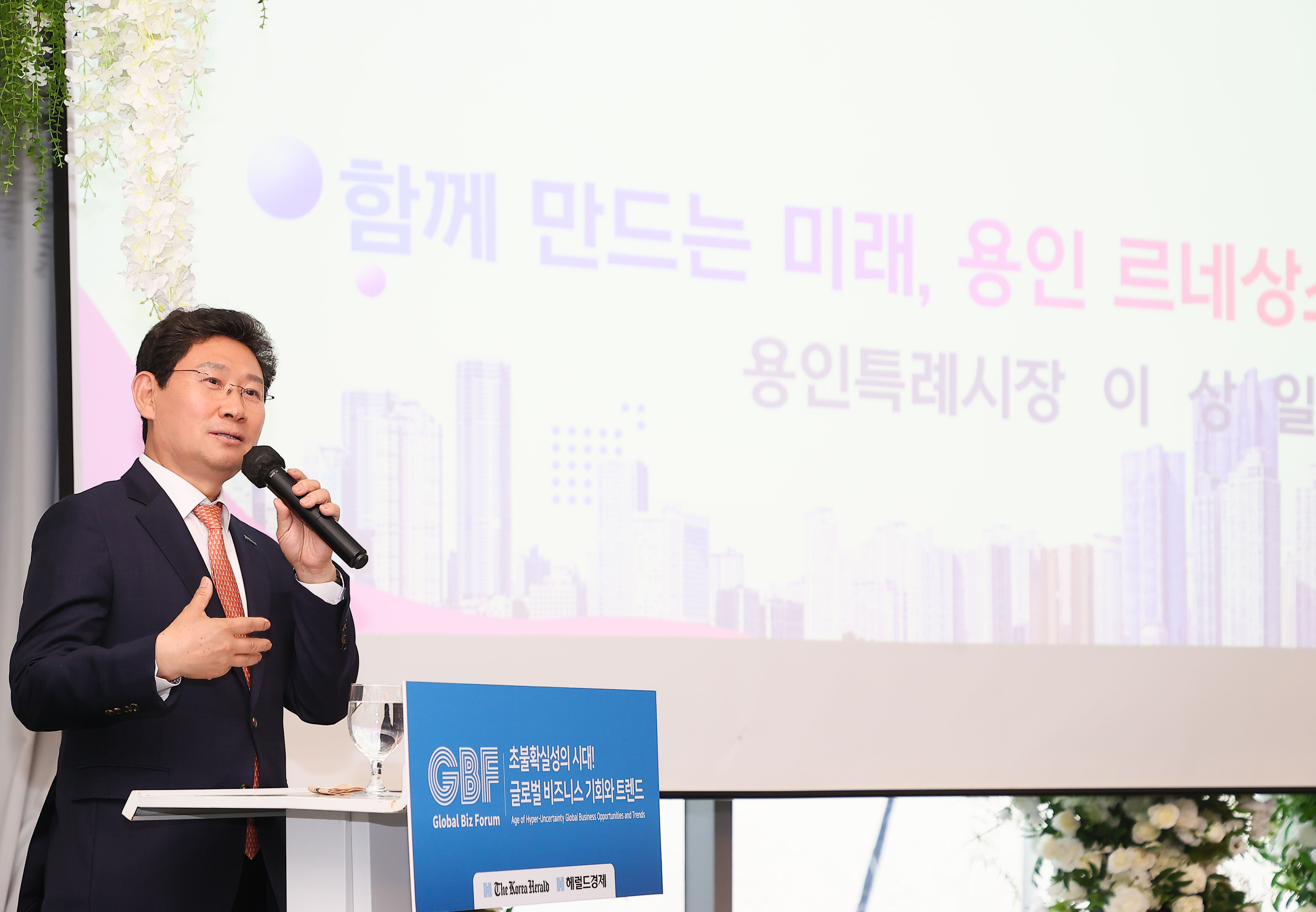 이상일 용인특례시장은 5일 저녁 서울 ‘마리나파크’에서 열린 ‘헤럴드 글로벌 비즈포럼’ 특강에서 용인의 미래 비전을 소개하는 특강을 진행했다.