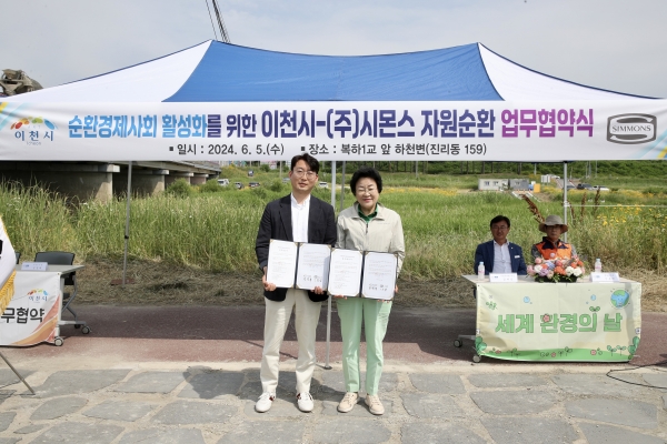 행사 첫 순으로 관내 기업인 ㈜시몬스와 자원순환 업무협약을 체결했다.