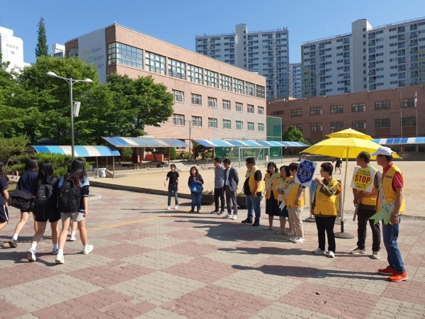 [금요저널] 포천시 소흘읍 청소년지도협의회는 지난 5일 소흘읍 대경중학교에서 학교 폭력 예방 및 청소년 보호 캠페인을 실시했다.