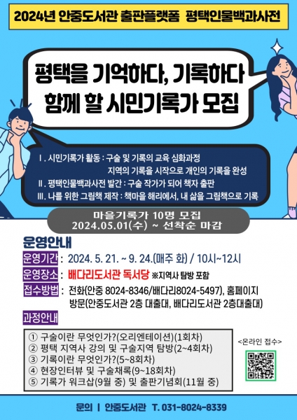 현재 도서관 구술사업은 5월부터 점차적으로 시행되고 있으며 자세한 문의는 안중도서관으로 하시길 바란다.