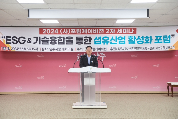 강수현 시장은 환영사를 통해 “섬유산업은 국내외적으로 어려운 상황 속에서도 우리는 국가 뿌리산업으로 지키며 끊임없는 기술 개발과 투자로 지금의 섬유산업을 지켜왔다”고 말했다.