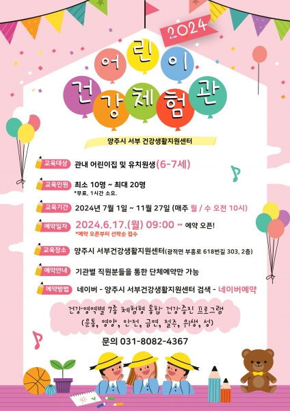 체험 예약은 오는 17일 9시부터 네이버에 양주시 어린이건강체험관을 검색 후 원하는 날짜에 예약하면 된다.