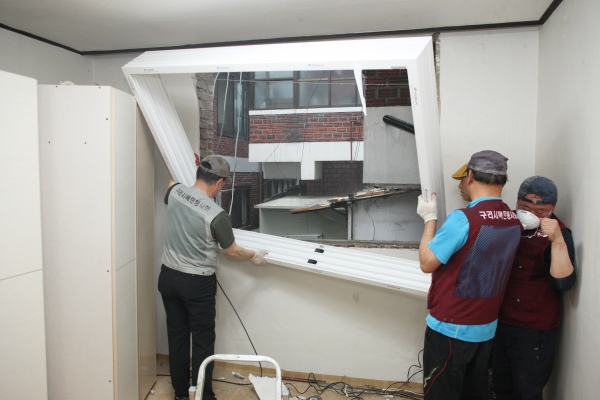 이에 목민봉사회와 구리시 자원봉사센터 직원들이 함께 도배장판 교체, 이중샷시 설치 작업 등을 실시했다.