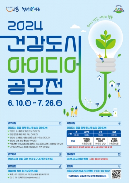 [금요저널] 시흥시는 ‘도시의 건강, 시민의 행복’을 위해 건강한 도시 환경을 조성하고 시민들의 삶의 질을 향상시키기 위해 ‘건강도시 아이디어 공모전’을 개최한다.