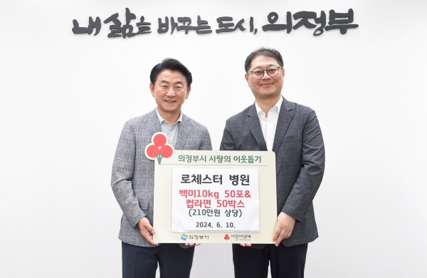 [금요저널] 의정부시는 6월 10일 로체스터병원이 저소득가구를 위한 총 210만원 상당의 백미 50포 및 컵라면 50상자를 전달했다고 밝혔다.