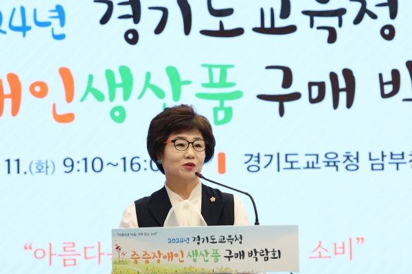 [금요저널] 경기도의회 교육기획위원회 황진희 위원장은 6월 11일 경기도교육청 남부청사에서 열린 2024년 중증장애인생산품 구매박람회에서 “우리 사회가 진정한 포용성을 갖추기 위해서는 장애인의 권리와 자립을 지원해야 한다”고 강조하며 참석자들에게 자긍심을 심어줬다.
