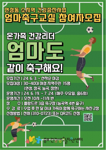 온 가족 건강 리더, 엄마 축구교실 참여자 모집