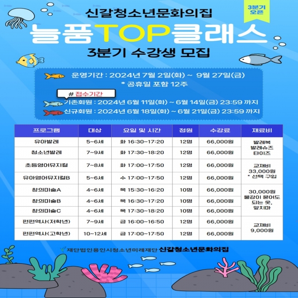 [금요저널] 재단법인용인시청소년미래재단 신갈청소년문화의집은 2024년 3분기 문화교육강좌 ‘늘품TOP클래스’를 운영한다고 11일 밝혔다.