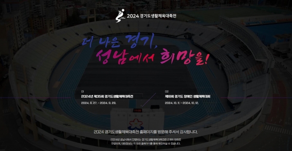 [금요저널] 성남시는 오는 9월과 10월 지역에서 열리는 2개 종류의 도 체육대회 홍보를 위해 ‘2024 경기도 생활체육대축전 공식 홈페이지’를 개설했다고 13일 밝혔다.