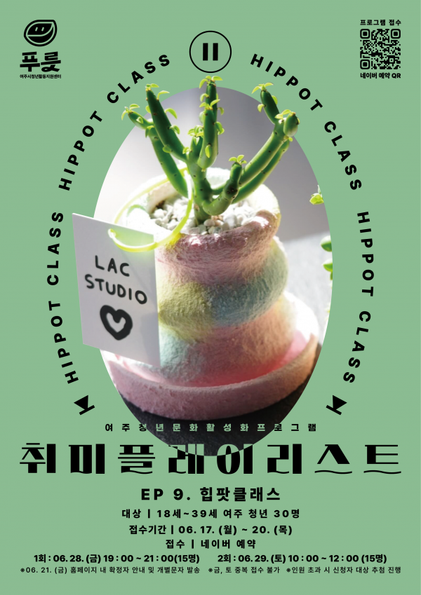 취미플레이리스트 ‘힙팟클래스’ 프로그램에 대한 자세한 사항은 여주시 청년활동지원센터 블로그를 통해 확인할 수 있다.