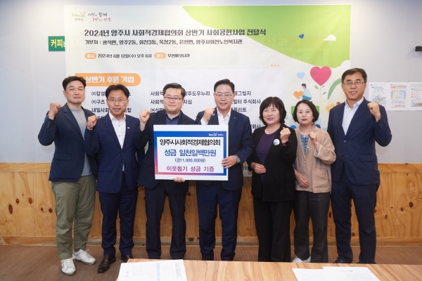 [금요저널] 양주시는 지난 12일 ‘양주시사회적경제협의회’에서 상반기 사회공헌사업인 후원금 전달식을 개최했다고 밝혔다.