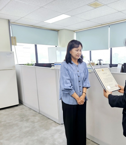 황세주 의원은 한효경 팀장에게 표창장을 수여하고 격려와 축하의 메시지를 전하며 앞으로도 지역사회와 의회 발전을 위해 관심을 갖고 지금의 위치에서 최선을 다해달라는 인사를 전했다.
