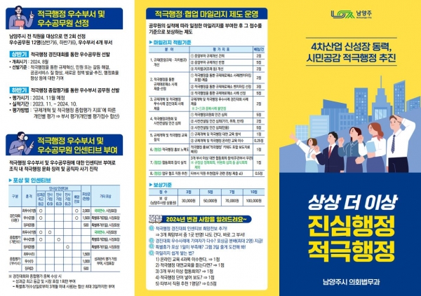 이 밖에도 시는 올해 적극행정 경진대회 참여기관을 기존 내부 직원에서 남양주 도시공사 등 공공기관까지 확대해 적극행정 우수사례를 적극 발굴하고 대시민 홍보도 강화할 예정이다.