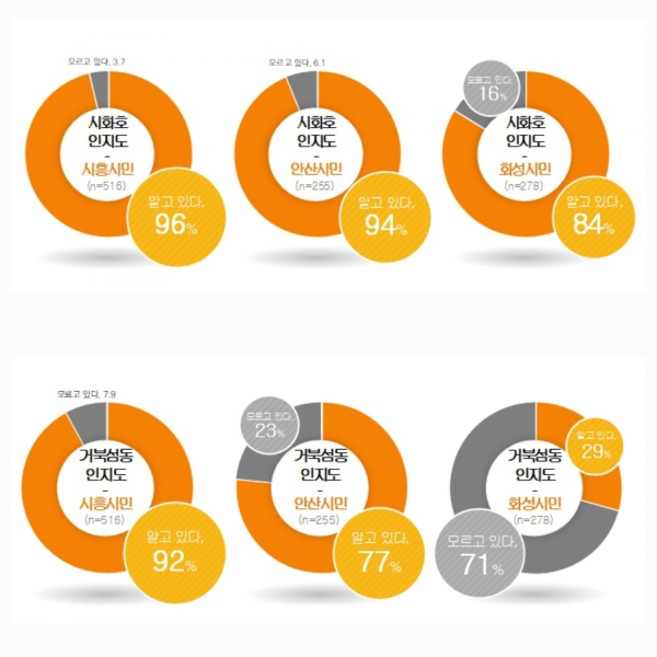 조사 결과에 따르면, 세 개 지자체 시민 대다수가 시화호에 대해 인지하고 있었으며 과반 이상이 방문한 경험이 있다고 답했다.