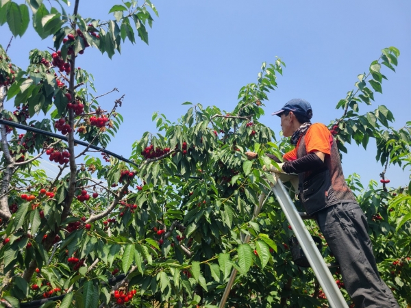 비가림시설을 설치한 체리 농가는 “작년에는 체리 저온과 수확기에 내리는 잦은 비로 인해 체리가 열과현상이 생겨 대부분 판매할 수 없었는데, 올해는 간이 비가림 시설 설치로 체리 수확시기 단축 및 열과 피해를 줄이게 되어 체리 수확량이 많이 늘었다”며 즐거운 소감을 밝혔다.