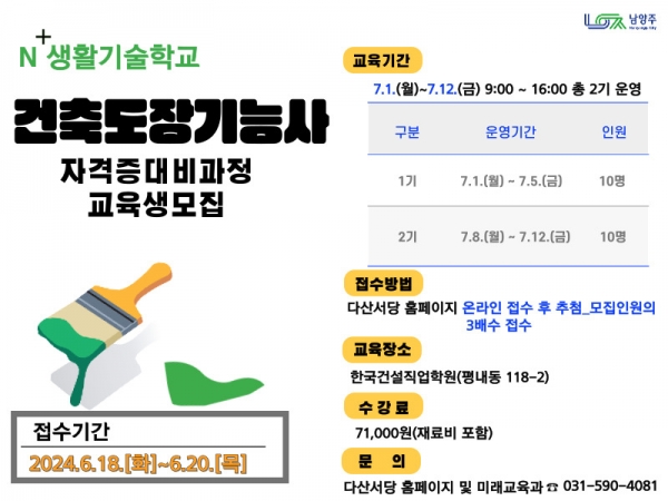 남양주시, 건축도장기능사 자격 과정 교육생 모집