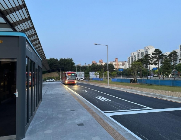 이번 개선 사업에서는 기존 보도의 폭을 2m에서 5m로 확장해 버스 승하차객의 보행환경을 개선했고 크랙 및 도로 파임 등으로 인해 버스 주행이 어려웠던 차도의 전면 재포장, 완충녹지 측 보도 공간 확충도 함께 진행했다.