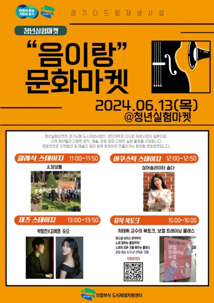 경기도형 도시재생지원사업인 경민대학로 더드림 재생사업의 일환으로 시행되는 청년실험마켓은 지역청년들의 창작, 예술, 문화 등 다양한 실험활동을 지원한다.