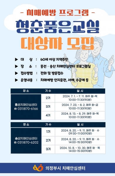 의정부시 치매안심센터, 치매 예방 프로그램 ‘청춘 품은 교실’ 참여자 모집