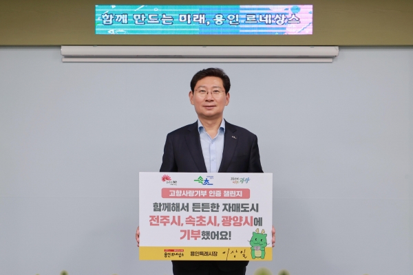 [금요저널] 이상일 용인특례시장은 19일 고향사랑기부제를 활성화하기 위해 진행 중인 ‘고향사랑기부인증 챌린지’에 동참했다.