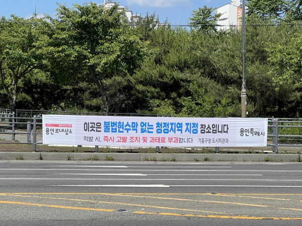 구가 이번에 불법 현수막 없는 청정지역으로 지정한 곳은 신수로 일대 소실마을 입구 남사거리~보쉬앞사거리, 동백역·초당역 일대 교통섬, 신갈외식타운 일대 등 9곳이다.