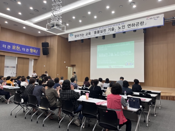 경기도장기요양요원지원센터와 협업해 마련한 이번 교육은 포천시 장기 요양 요원 등의 역량을 강화하기 위한 △휠체어, 보행 보조기 등을 활용한 돌봄 실천 기술 △노인 연하곤란 예방 및 대처 방법 등으로 진행됐다.