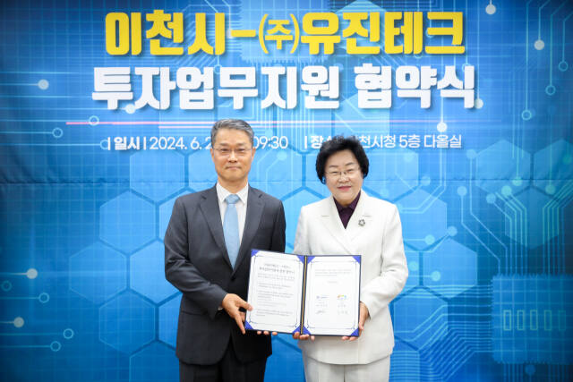 이천시(시장 김경희)는 반도체 중견기업 ㈜유진테크(대표 신승우)가 이천 사업장을 증설하기로 결정하면서 투자업무 지원을 위한 투자협약(MOU)을 체결했다고 23일 밝혔다.