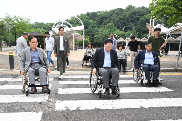 이날 행사에는 강수현 양주시장, 박재용 경기도의회 의원을 비롯해 관계 공무원과 경기지체장애인협회 양주시지회장, 경기교통협회 양주시지회장 등 약 16명이 참여한 가운데 수동휠체어를 타고 공원 내 무대 경사로 올라가기, 화장실 이용하기 및 횡단보도 이용하기 등 공원 진입로를 직접 휠체어를 타고 이동하는 체험을 진행했다.