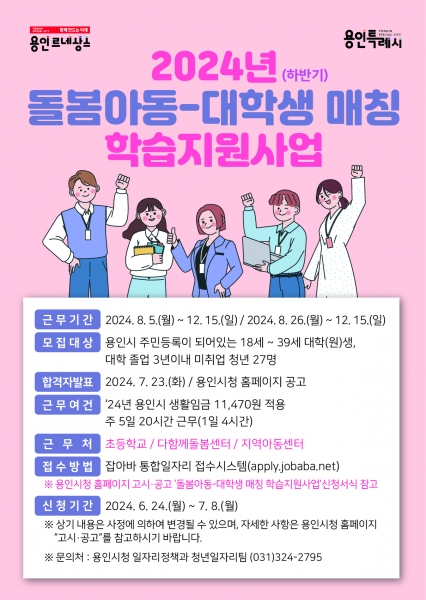 용인특례시, 하반기‘어린이 공부 돌봄’ 대학생 27명 모집