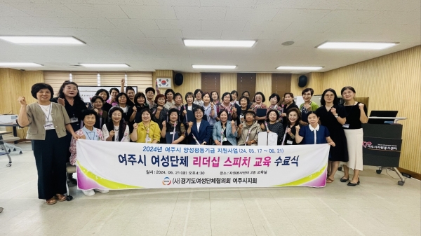 이는 협의회가 여주시 양성평등기금을 지원받아 추진한 여성 교육사업으로 여성들의 리더십을 갖추기 위해 필요한 커뮤니케이션 스킬 등 스피치 역량 강화를 목적으로 6차에 걸쳐 진행됐으며 4차시 이상 수료한 교육생 38명이 수료증을 받았다.