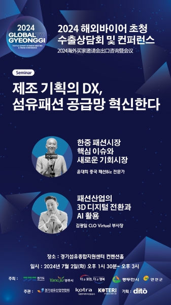 세미나에서는 △ 윤대희 중국 패션 비즈니스 전문가의 ‘한·중패션 시장 트렌드 분석과 새로운 기회시장’, △ 김광일 클로버추얼 부사장의 ‘패션산업의 3D 디지털 전환과 AI 활용’을 주제로 연이어 진행된다.